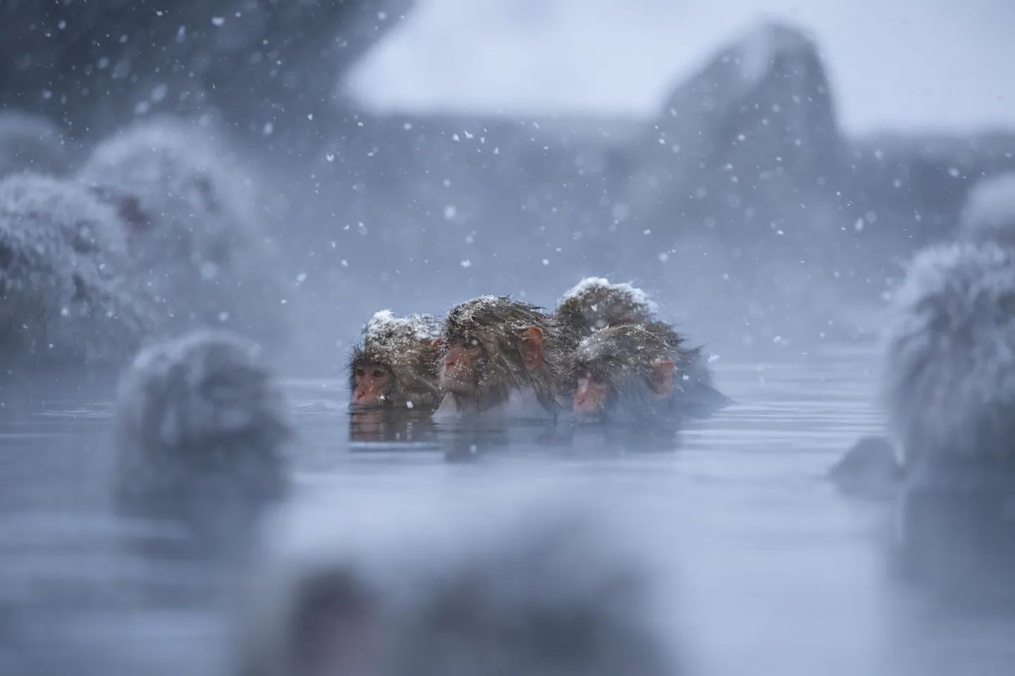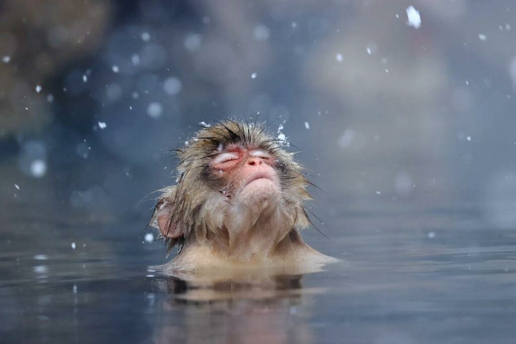 Lorsque l’on évoque le macaque japonais (Macaca fuscata), ou singe des neiges, la première image qui nous vient en tête est cette fameuse image d’Épinal, de singes qui se baignent dans des sources d’eaux thermales !